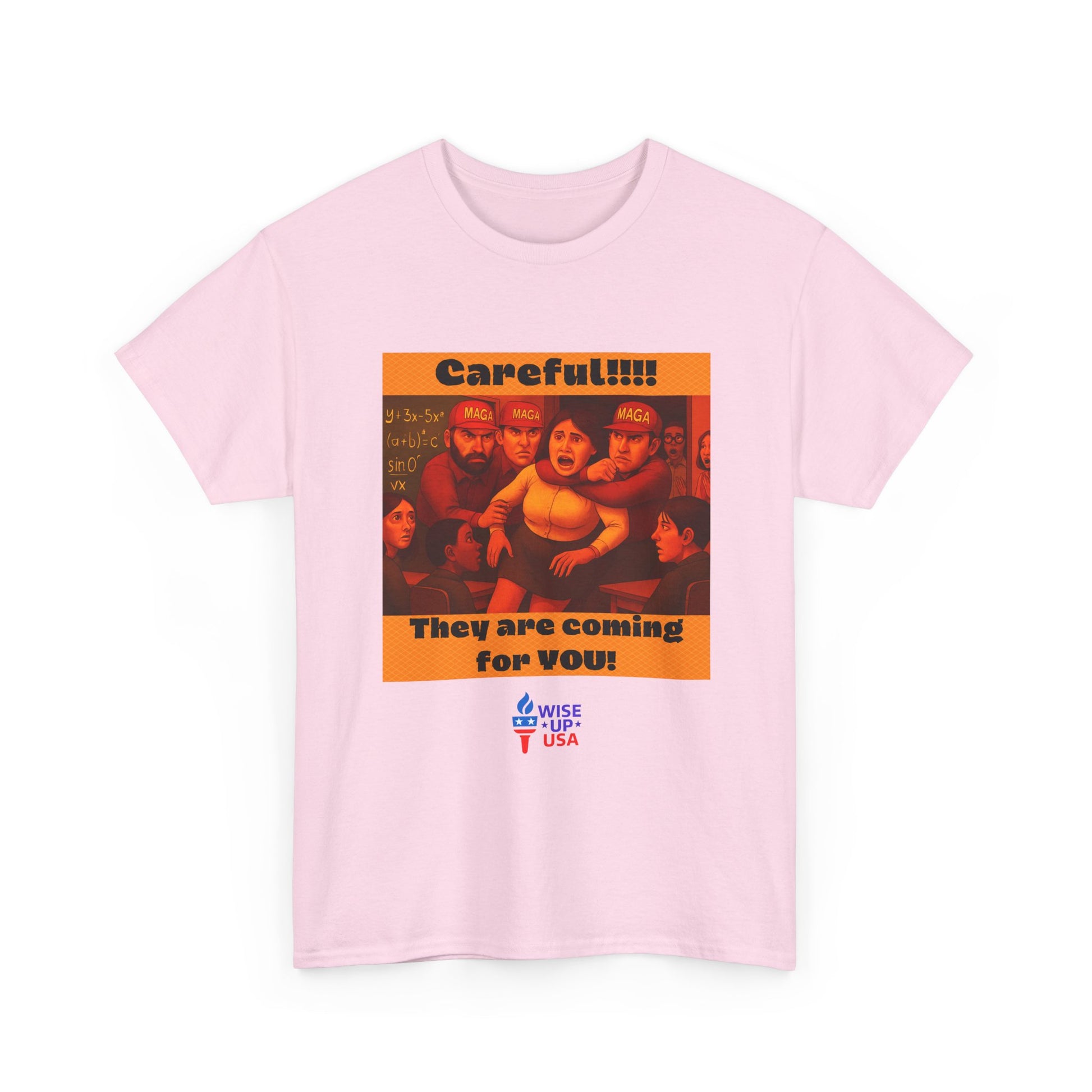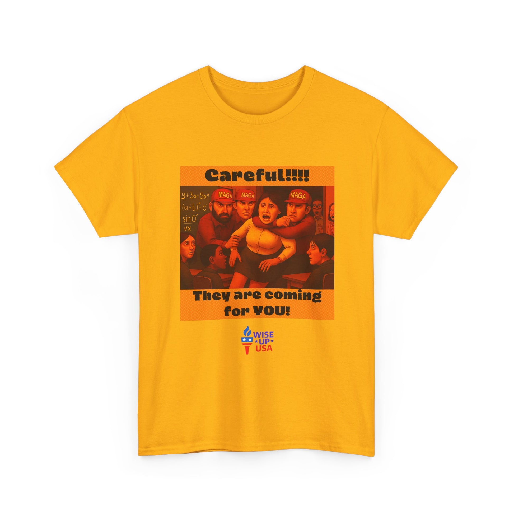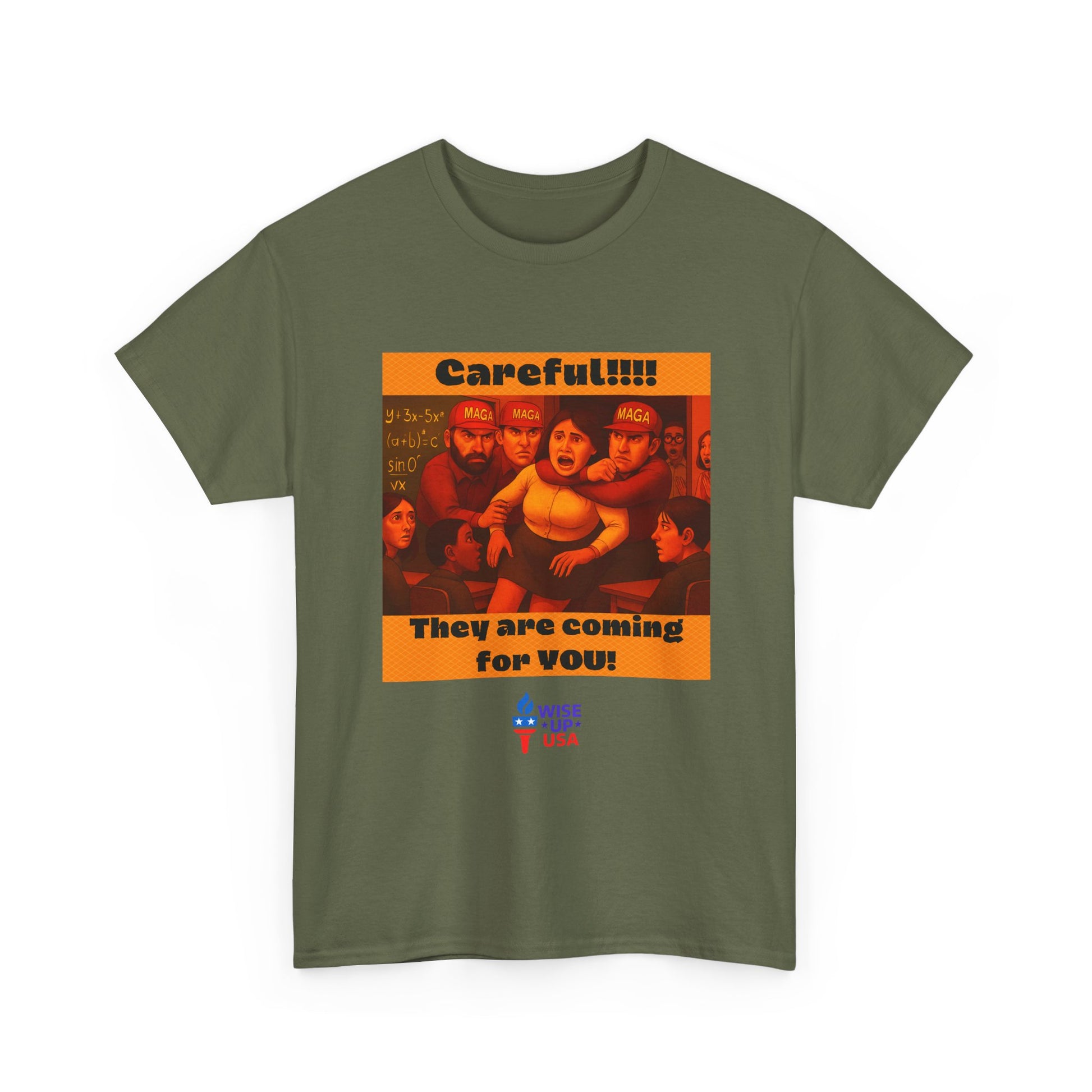 Careful Teacher! Unisex Heavy Cotton Tee, Election Day Apparel Activists, Against Trump, Republicans, and MAGA, Resistance, No MAGA