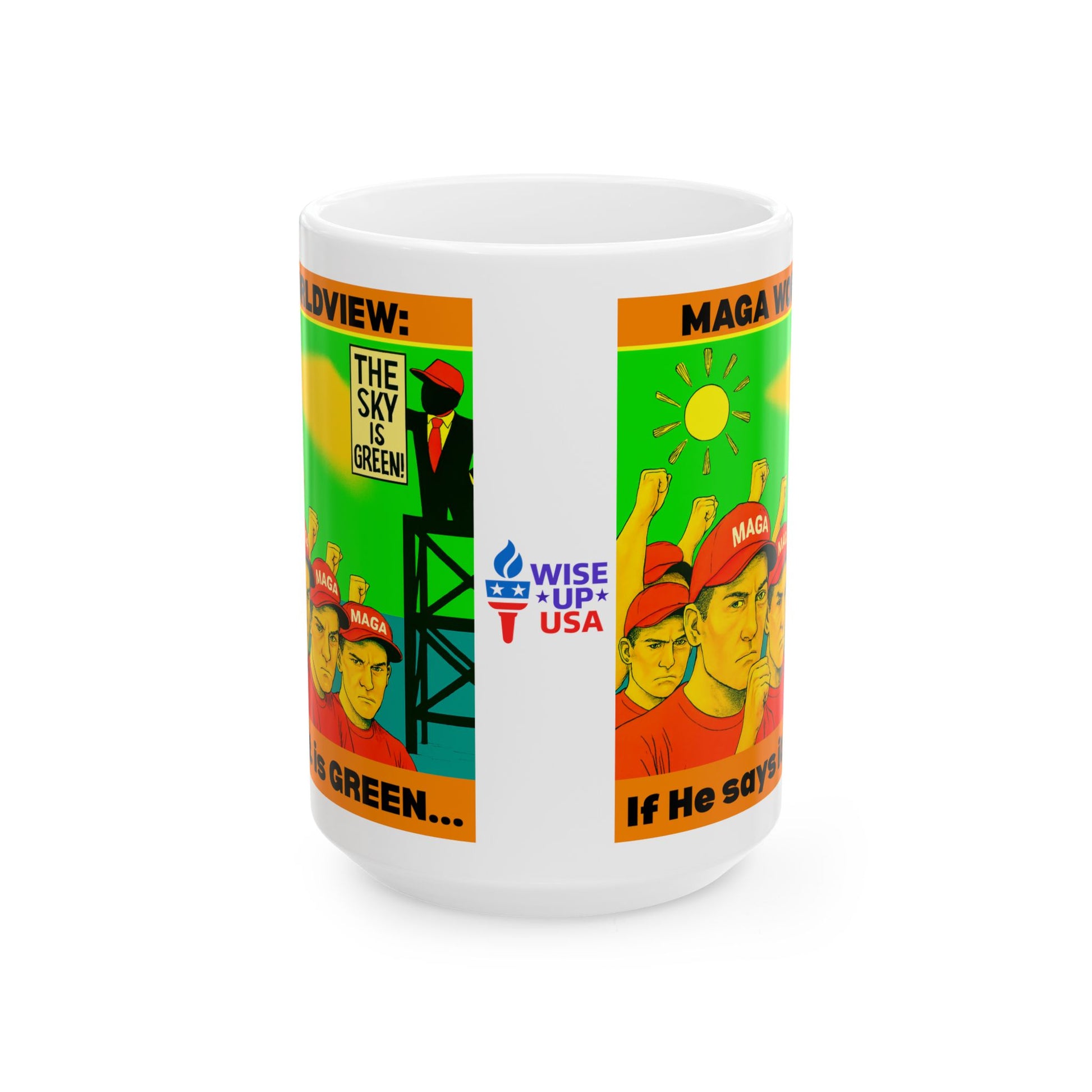 Ceramic Mug, Sky is Green , Election Decor, Wise Up USA, Activist Gift, Midterms 26, Political Coffee Cup, Protester Present, Anti MAGA