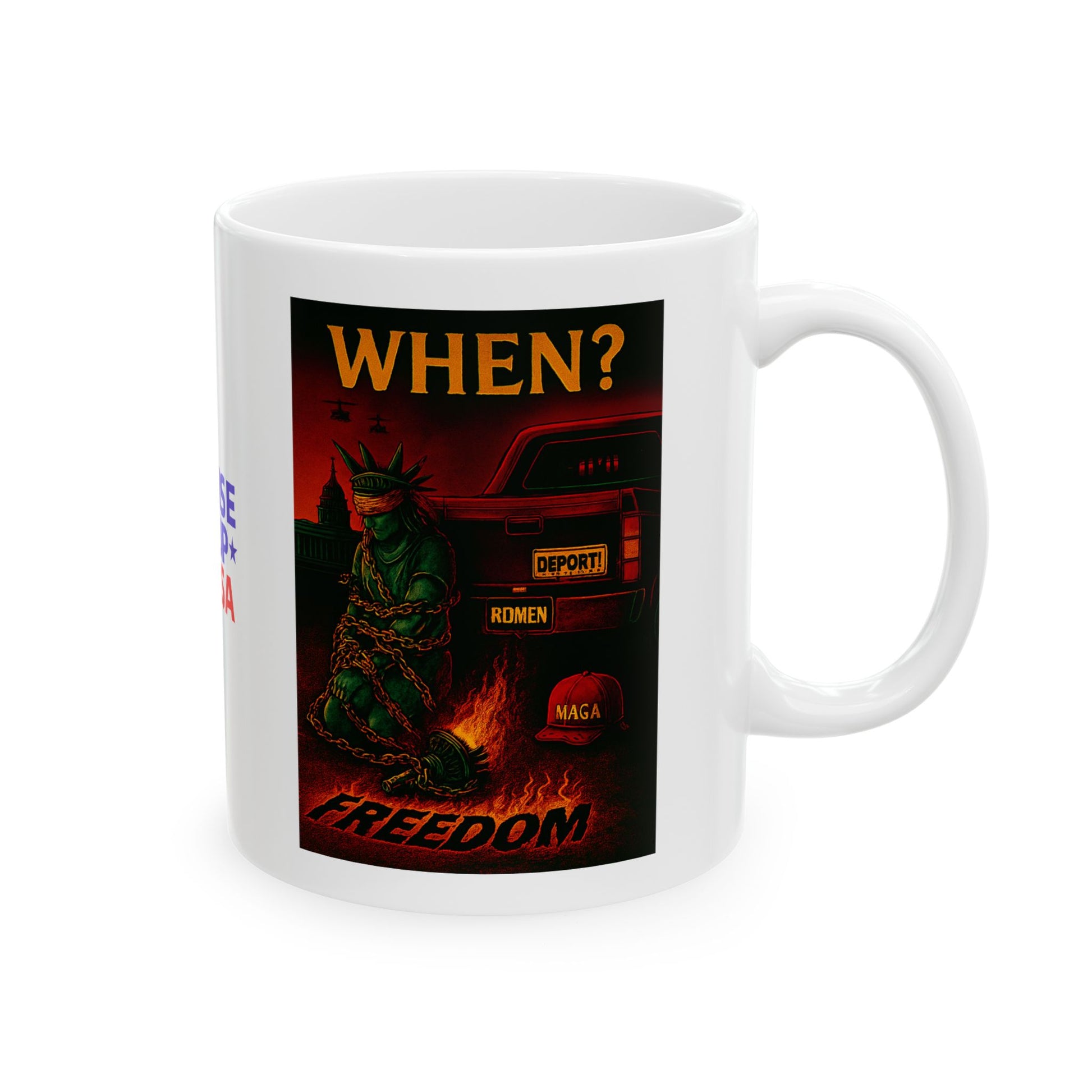 This ceramic mug features Stolen Liberty design, perfect for election decor and warning America to not back down or our ideals will disappear, a great gift for activists during the Midterms 26. The glossy finish and vibrant colors make this mug stand out, suitable for daily use by those passionate about politics and making a change in the USA.