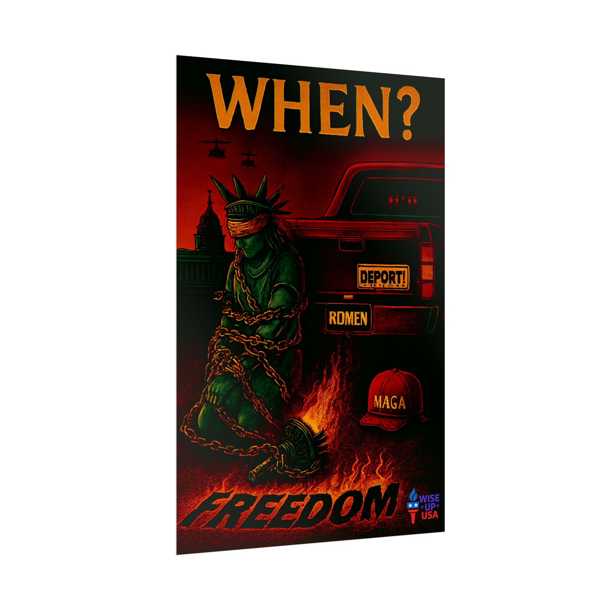 A protest poster designed to awaken Americans to realize that we are losing our liberty . This poster exudes a powerful and bold message, perfect for activists and politically-conscious individuals. Ideal for hanging in dorm rooms, offices, or community spaces. Relevant for election season, political activism, and protest movements. Target audience includes activists, politically-conscious individuals, and those passionate about social justice issues. Perfect for holidays like Election Day and protest movements.