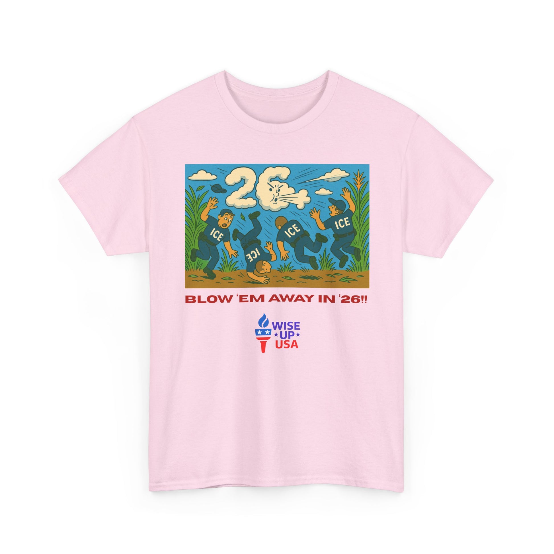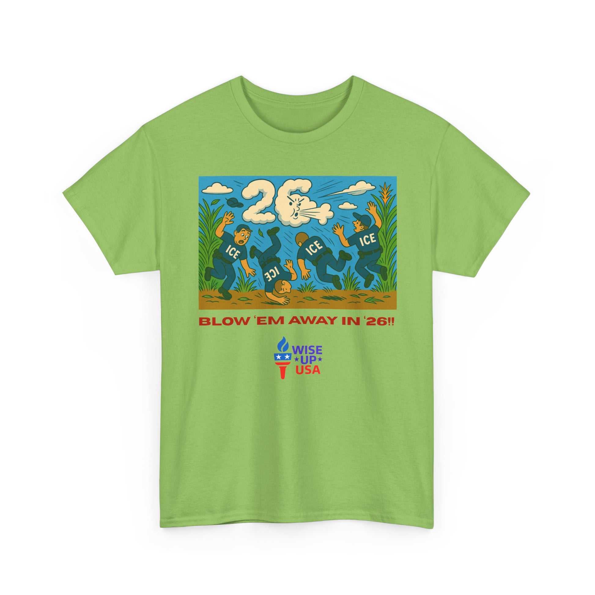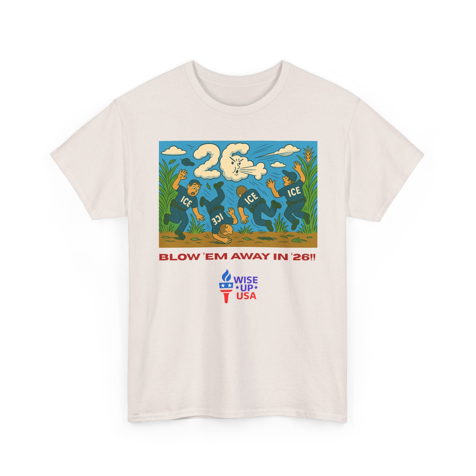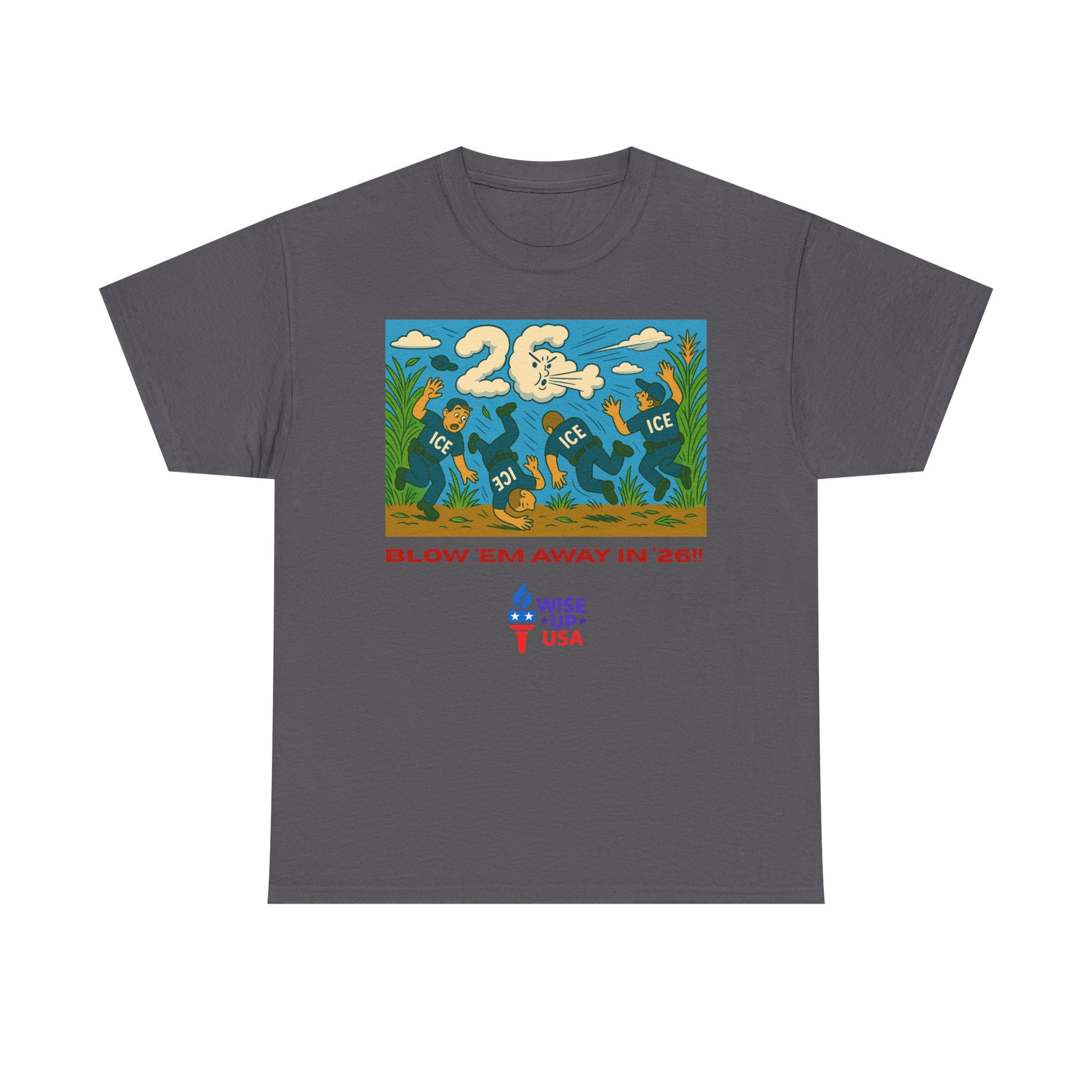 Unisex Heavy Cotton Tee with Patriotic 'Blow 'em Away in '26!", Design, Election Day Apparel, USA Stop ICE, Gift for Activists, Midterm 26
